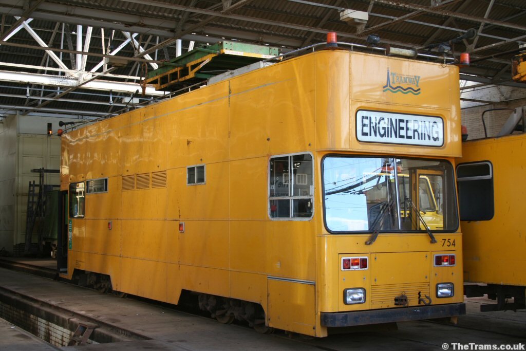 Engineering tram 754 at Rigby Road depot